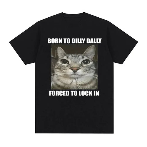 Born To Dilly Dally Forced To Lock in Cat Funny Graphic T Shirt Men Women Casual Fashion Cotton T-shirts Summer Tops